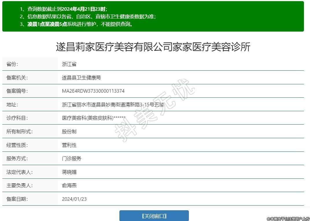遂昌莉家醫(yī)療美容有限公司家家醫(yī)療美容診所
