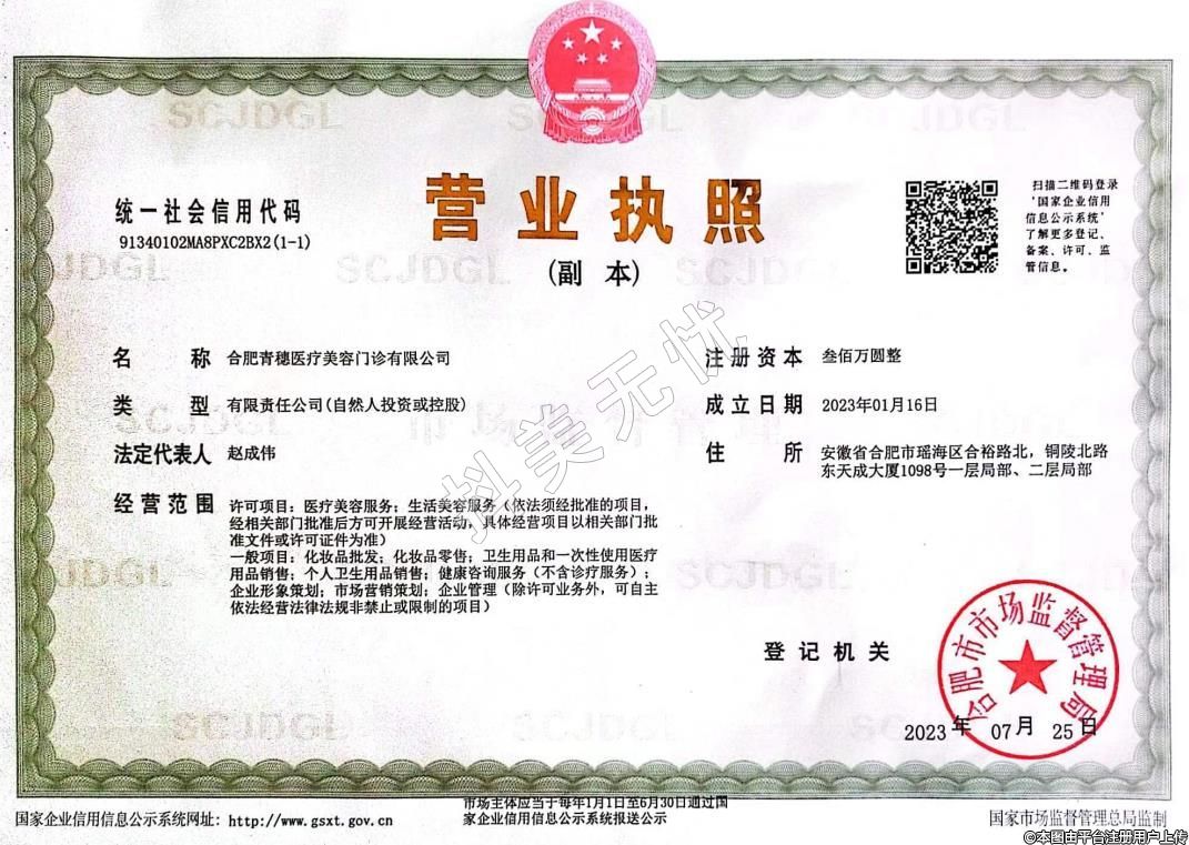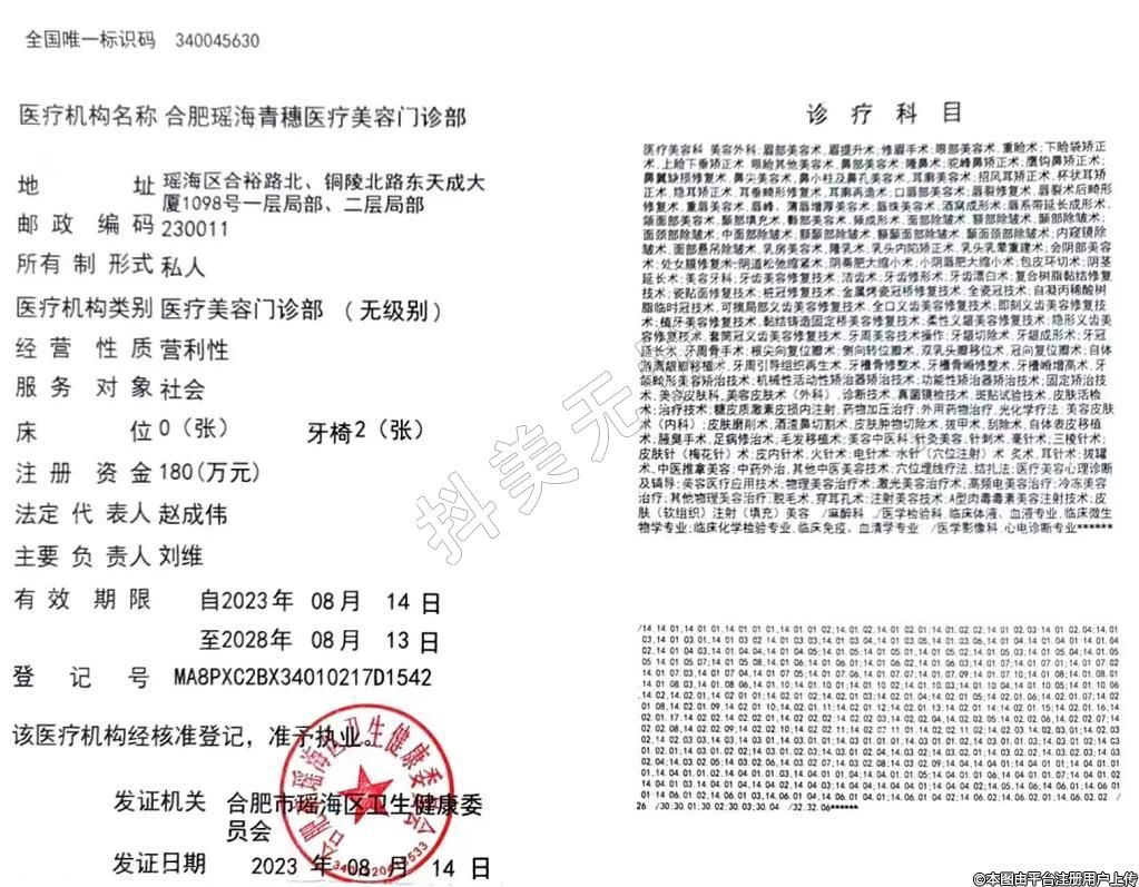 醫(yī)療機(jī)構(gòu)名稱:合肥瑤海青穗醫(yī)療美容門診部