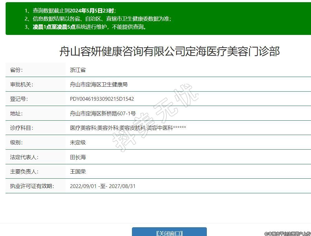 舟山容妍健康咨詢(xún)有限公司定海醫(yī)療美容門(mén)診部