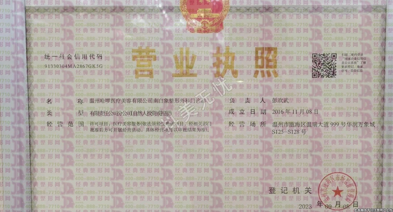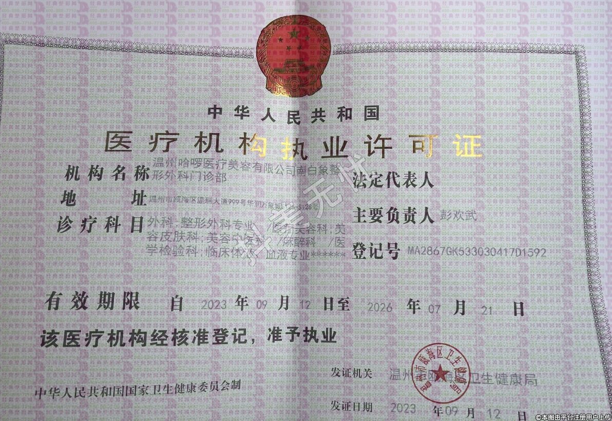 機(jī)構(gòu)名稱(chēng):溫州哈啰醫(yī)療美容有限公司南白象整形外科門(mén)診部