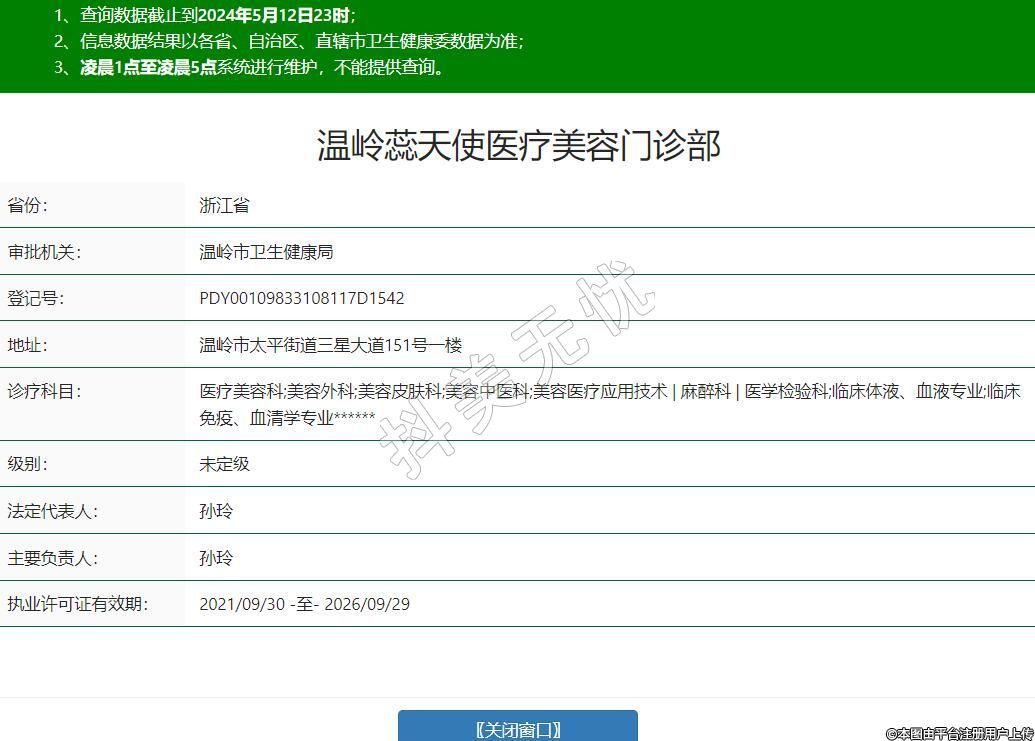 溫嶺蕊天使醫(yī)療美容(歷史名稱:溫嶺美藝美星)診療科目:醫(yī)療美容科;美容外科;美容皮膚科;美容中醫(yī)科;美容醫(yī)療應(yīng)用技術(shù) | 麻醉科 | 醫(yī)學檢驗科;臨床體液、血液專業(yè);臨床免疫、血清學專業(yè)******