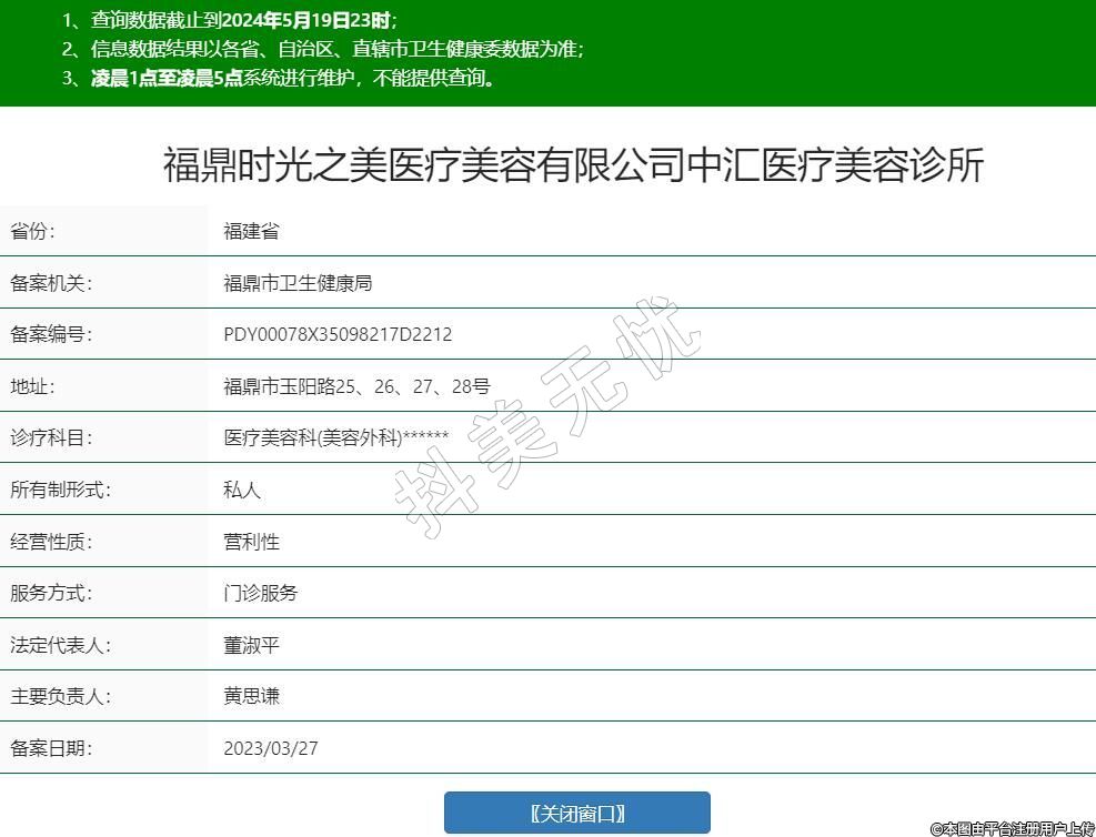 福鼎時光之美醫(yī)療美容有限公司中匯醫(yī)療美容診所,診療科目:醫(yī)療美容科(美容外科)******