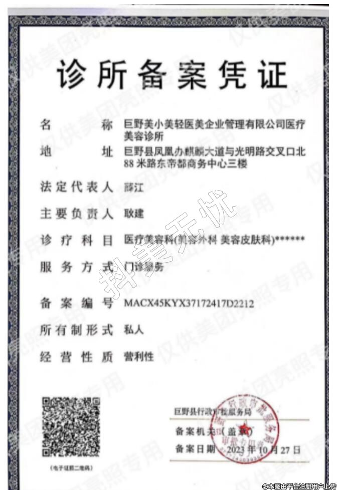 名稱:巨野美小美輕醫(yī)美企業(yè)管理有限公司醫(yī)療美容診所
