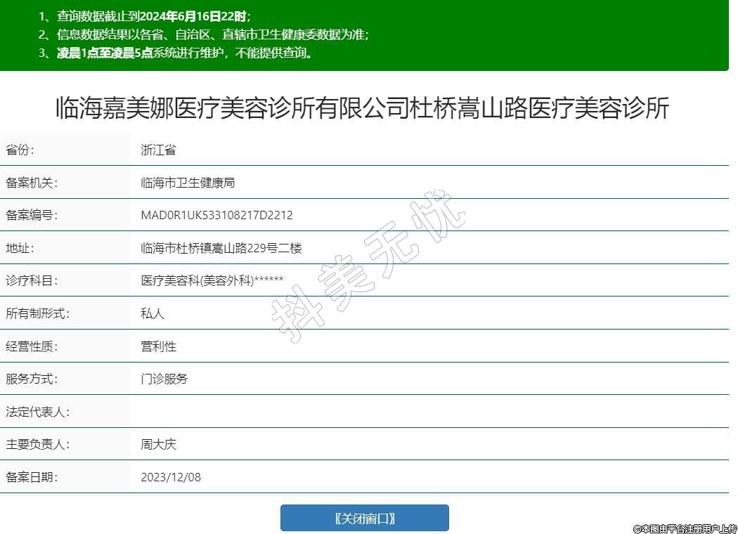臨海嘉美娜醫(yī)療美容診所有限公司杜橋嵩山路醫(yī)療美容診所