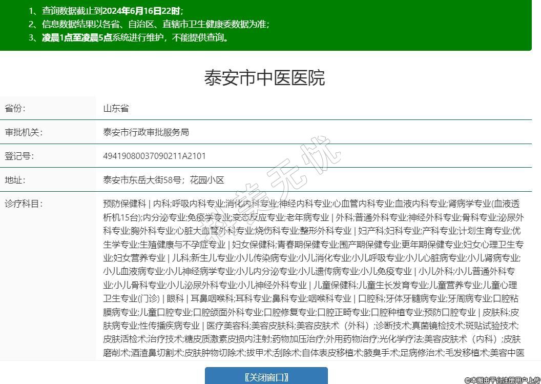 預(yù)防保健科 | 內(nèi)科;呼吸內(nèi)科專業(yè);消化內(nèi)科專業(yè);神經(jīng)內(nèi)科專業(yè);心血管內(nèi)科專業(yè);血液內(nèi)科專業(yè);腎病學(xué)專業(yè)(血液透析機(jī)15臺(tái));內(nèi)分泌專業(yè);免疫學(xué)專業(yè);變態(tài)反應(yīng)專業(yè);老年病專業(yè) | 外科;普通外科專業(yè);神經(jīng)外科專業(yè);骨科專業(yè);泌尿外科專業(yè);胸外科專業(yè);心臟大血管外科專業(yè);燒傷科專業(yè);整形外科專業(yè) | 婦產(chǎn)科;婦科專業(yè);產(chǎn)科專業(yè);計(jì)劃生育專業(yè);優(yōu)生學(xué)專業(yè);生殖健康與不孕癥專業(yè) | 婦女保健科;青春期保健專業(yè);圍產(chǎn)期保健專業(yè);更年期保健專業(yè);婦女心理衛(wèi)生專業(yè);婦女營(yíng)養(yǎng)專業(yè) | 兒科;新生兒專業(yè);小兒傳染病專業(yè);小兒消化專業(yè);小兒呼吸專業(yè);小兒心臟病專業(yè);小兒腎病專業(yè);小兒血液病專業(yè);小兒神經(jīng)病學(xué)專業(yè);小兒內(nèi)分泌專業(yè);小兒遺傳病專業(yè);小兒免疫專業(yè) | 小兒外科;小兒普通外科專業(yè);小兒骨科專業(yè);小兒泌尿外科專業(yè);小兒神經(jīng)外科專業(yè) | 兒童保健科;兒童生長(zhǎng)發(fā)育專業(yè);兒童營(yíng)養(yǎng)專業(yè);兒童心理衛(wèi)生專業(yè)(門診) | 眼科 | 耳鼻咽喉科;耳科專業(yè);鼻科專業(yè);咽喉科專業(yè) | 口腔科;牙體牙髓病專業(yè);牙周病專業(yè);口腔粘膜病專業(yè);兒童口腔專業(yè);口腔頜面外科專業(yè);口腔修復(fù)專業(yè);口腔正畸專業(yè);口腔種植專業(yè);預(yù)防口腔專業(yè) | 皮膚科;皮膚病專業(yè);性傳播疾病專業(yè) | 醫(yī)療美容科;美容皮膚科;美容皮膚術(shù)(外科);診斷技術(shù);真菌鏡檢技術(shù);斑貼試驗(yàn)技術(shù);皮膚活檢術(shù);治療技術(shù);糖皮質(zhì)激素皮損內(nèi)注射;藥物加壓治療;外用藥物治療;光化學(xué)療法;美容皮膚術(shù)(內(nèi)科);皮膚磨削術(shù);酒渣鼻切割術(shù);皮膚腫物切除術(shù);拔甲術(shù);刮除術(shù);自體表皮移植術(shù);腋臭手術(shù);足病修治術(shù);毛發(fā)移植術(shù);美容中醫(yī)科;針灸美容;針刺術(shù);毫針術(shù);三棱針術(shù);皮膚針(梅花針)術(shù);皮內(nèi)針術(shù);火針術(shù);電針術(shù);水針(穴位注射)術(shù);炙術(shù);耳針術(shù);拔罐術(shù);中醫(yī)推拿美容;中藥外治;其他中醫(yī)美容技術(shù);穴位埋線療法;結(jié)扎法 | 臨床心理專業(yè) | 傳染科;腸道傳染病專業(yè);呼吸道傳染病專業(yè);肝炎專業(yè) | 腫瘤科 | 急診醫(yī)學(xué)科 | 康復(fù)醫(yī)學(xué)科 | 運(yùn)動(dòng)醫(yī)學(xué)科 | 麻醉科 | 疼痛科(門診) | 重癥醫(yī)學(xué)科 | 醫(yī)學(xué)檢驗(yàn)科;臨床體液、血液專業(yè);臨床微生物學(xué)專業(yè);臨床化學(xué)檢驗(yàn)專業(yè);臨床免疫、血清學(xué)專業(yè);臨床細(xì)胞分子遺傳學(xué)專業(yè) | 病理科 | 醫(yī)學(xué)影像科;X線診斷專業(yè);CT診斷專業(yè);磁共振成像診斷專業(yè);超聲診斷專業(yè);心電診斷專業(yè);腦電及腦血流圖診斷專業(yè);神經(jīng)肌肉電圖專業(yè);介入放射學(xué)專業(yè) | 中醫(yī)科;內(nèi)科專業(yè);外科專業(yè);婦產(chǎn)科專業(yè);兒科專業(yè);皮膚科專業(yè);眼科專業(yè);耳鼻咽喉科專業(yè);口腔科專業(yè);腫瘤科專業(yè);骨傷科專業(yè);肛腸科專業(yè);老年病科專業(yè);針灸科專業(yè);推拿科專業(yè);康復(fù)醫(yī)學(xué)專業(yè);急診科專業(yè);預(yù)防保健科專業(yè) | 中西醫(yī)結(jié)合科******