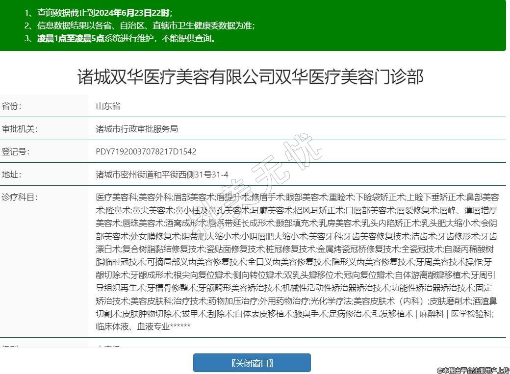 諸城雙華醫(yī)療美容有限公司雙華醫(yī)療美容門診部