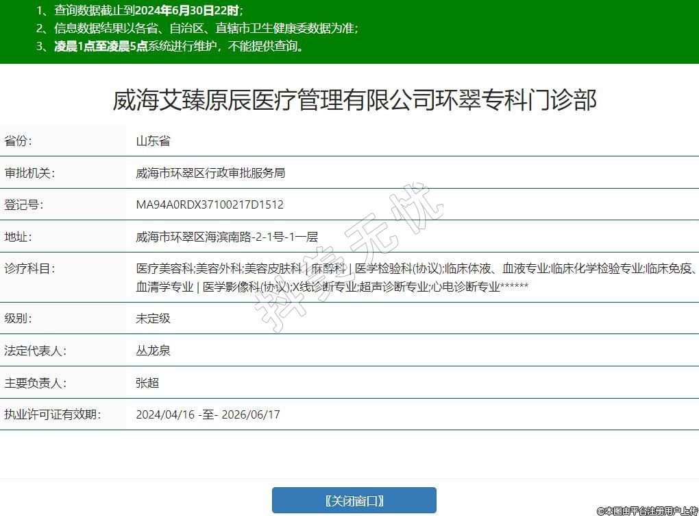 威海艾臻原辰醫(yī)療管理有限公司環(huán)翠專(zhuān)科門(mén)診部