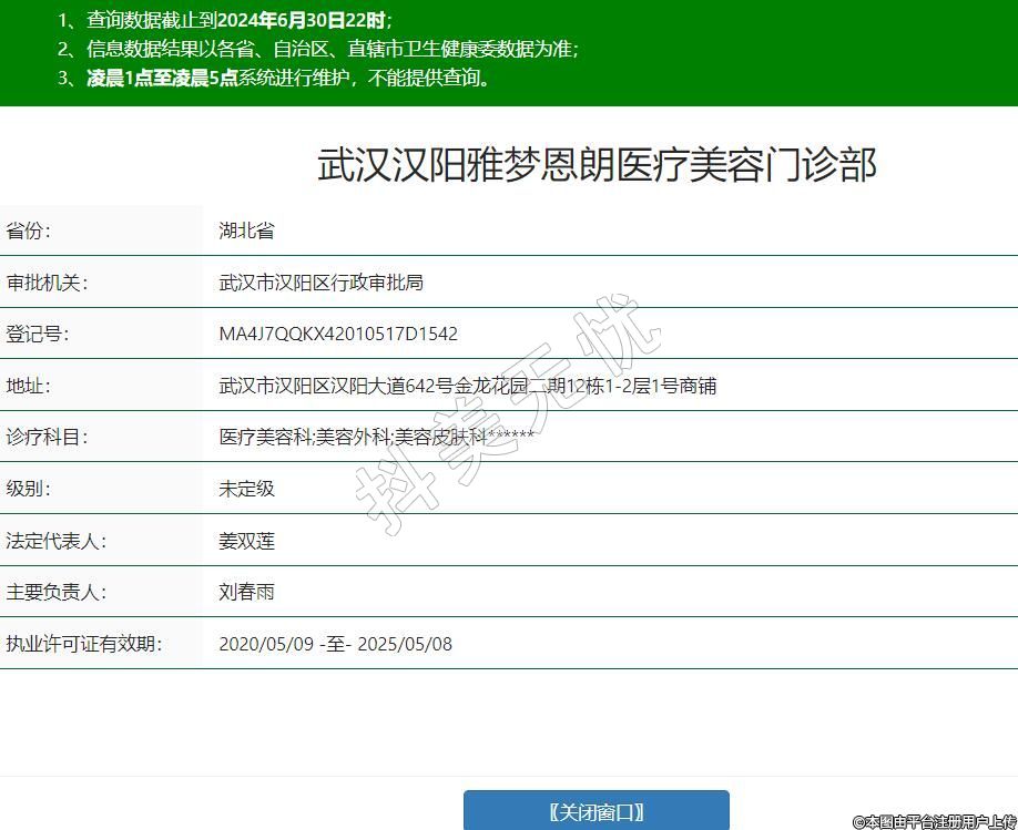 武漢漢陽雅夢恩朗醫(yī)療美容門診部