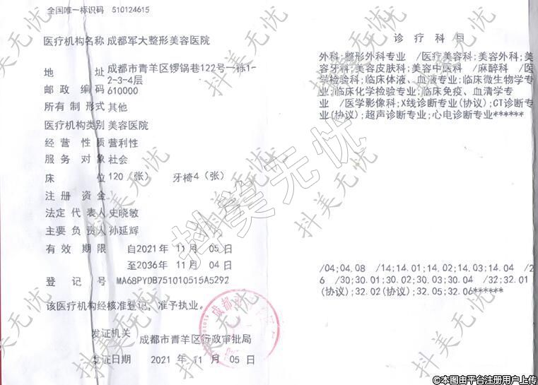 醫(yī)療機(jī)構(gòu)名稱:成都軍大整形美容醫(yī)院