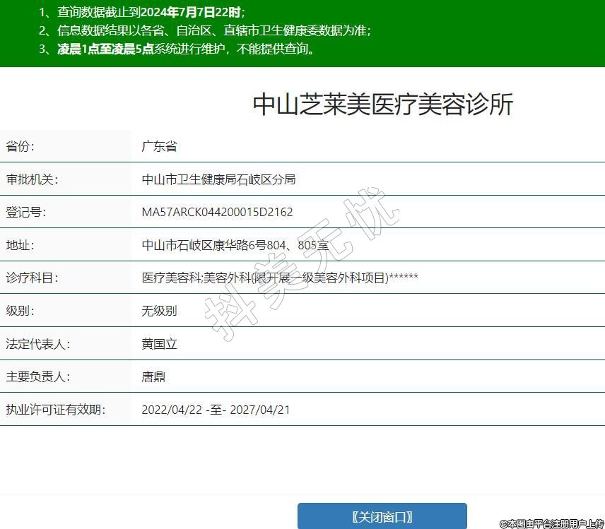 中山芝萊美醫(yī)療美容診所,診療科目:醫(yī)療美容科;美容外科(限開展一級美容外科項目)******