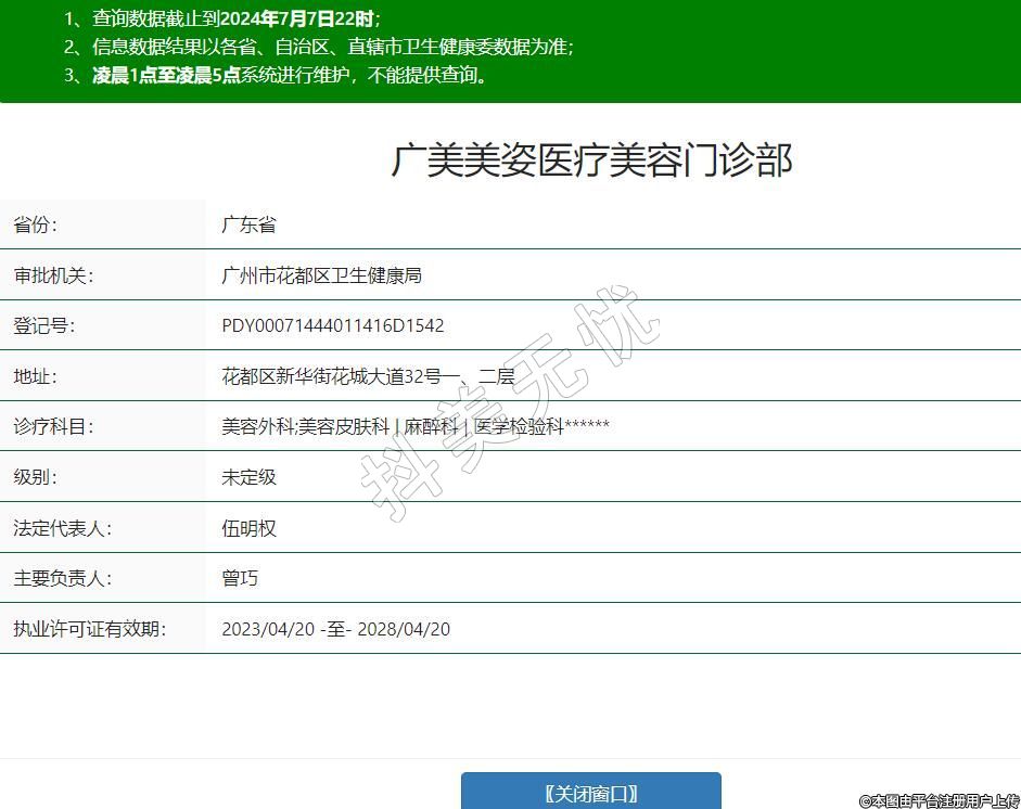 廣美美姿醫(yī)療美容門診部,診療科目:美容外科;美容皮膚科 | 麻醉科 | 醫(yī)學檢驗科******