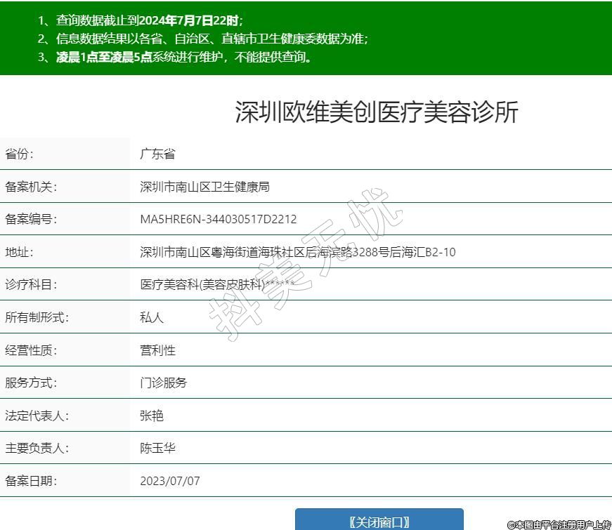 深圳歐維美創(chuàng)醫(yī)療美容診所,診療科目:醫(yī)療美容科(美容皮膚科)******