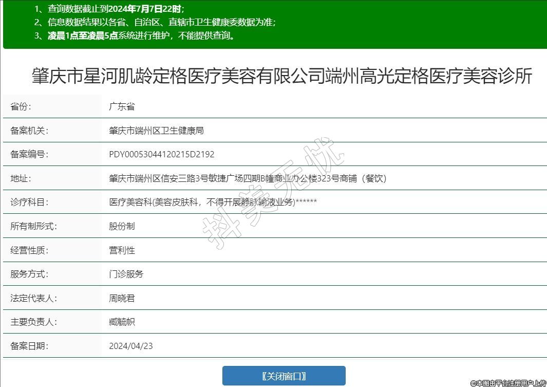 肇慶市星河肌齡定格醫(yī)療美容有限公司端州高光定格醫(yī)療美容診所,診療科目:醫(yī)療美容科(美容皮膚科,不得開展靜脈輸液業(yè)務)******