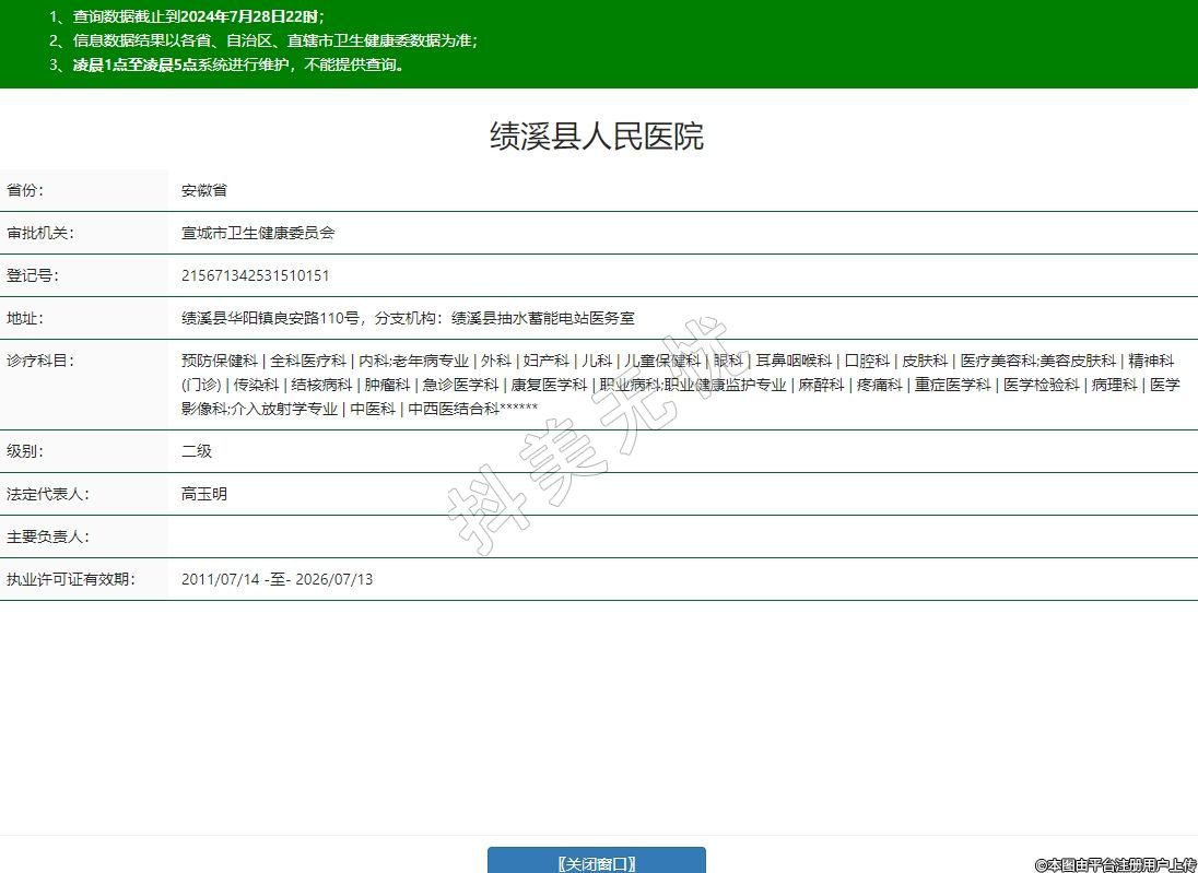 績(jī)溪縣華陽(yáng)鎮(zhèn)良安路110號(hào),分支機(jī)構(gòu):績(jī)溪縣抽水蓄能電站醫(yī)務(wù)室