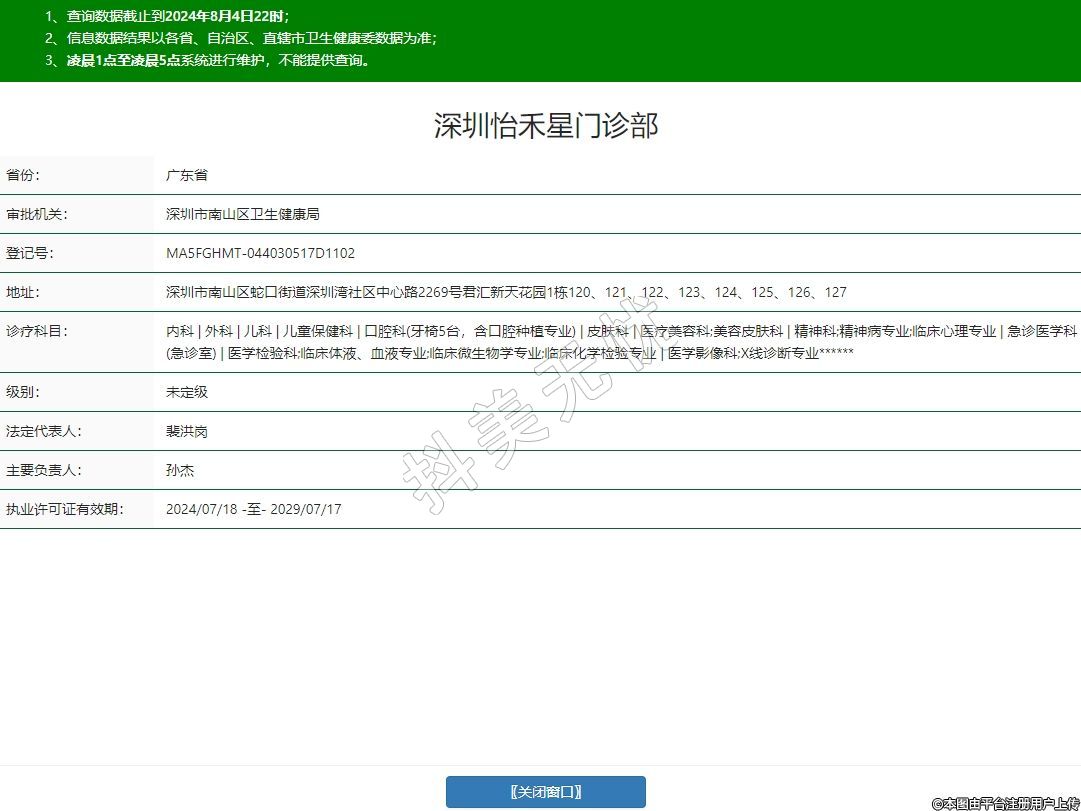 內(nèi)科 | 外科 | 兒科 | 兒童保健科 | 口腔科(牙椅5臺(tái),含口腔種植專業(yè)) | 皮膚科 | 醫(yī)療美容科;美容皮膚科 | 精神科;精神病專業(yè);臨床心理專業(yè) | 急診醫(yī)學(xué)科(急診室) | 醫(yī)學(xué)檢驗(yàn)科;臨床體液、血液專業(yè);臨床微生物學(xué)專業(yè);臨床化學(xué)檢驗(yàn)專業(yè) | 醫(yī)學(xué)影像科;X線診斷專業(yè)******