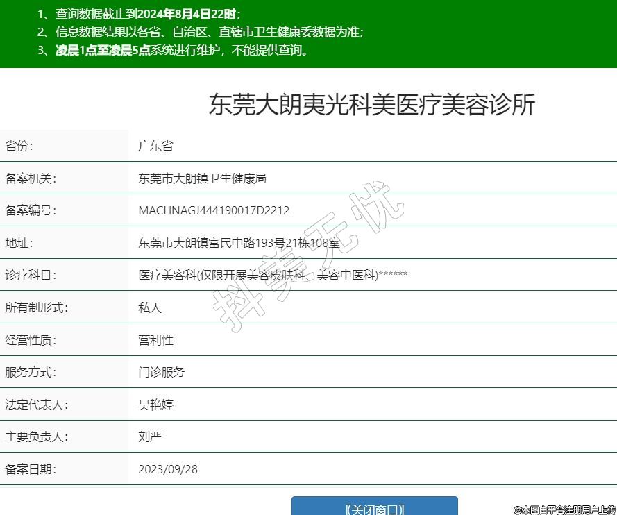 東莞大朗夷光科美醫(yī)療美容診所,診療科目:醫(yī)療美容科(僅限開展美容皮膚科、美容中醫(yī)科)******