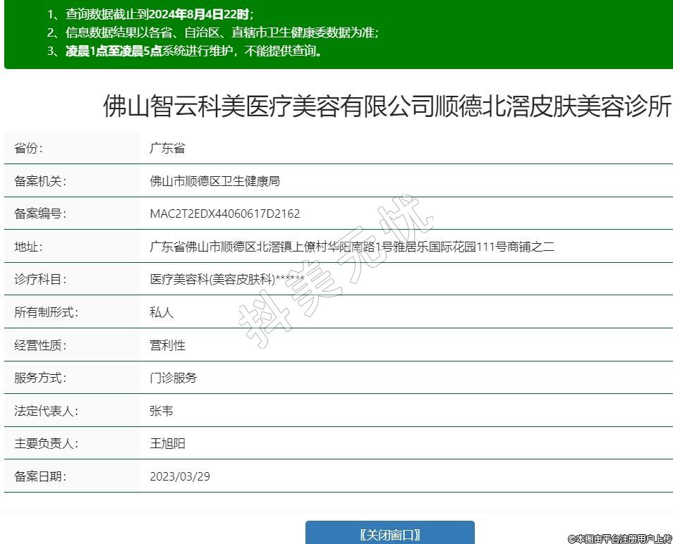 佛山智云科美醫(yī)療美容有限公司順德北滘皮膚美容診所,診療科目:醫(yī)療美容科(美容皮膚科)******