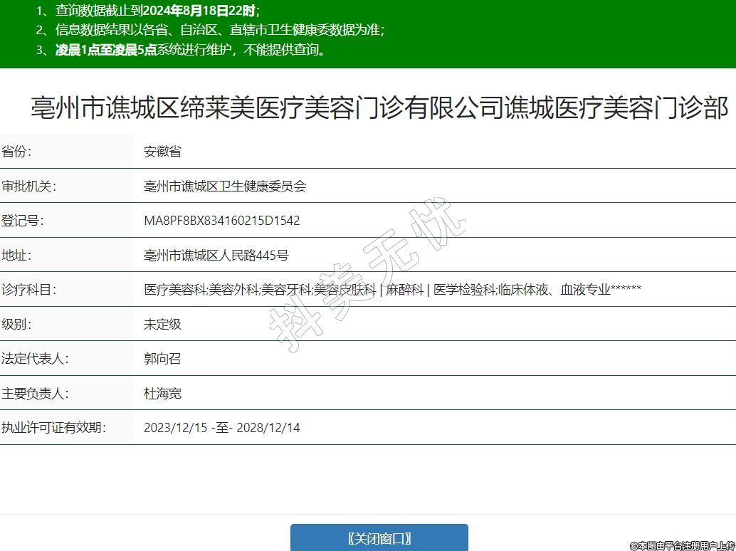 亳州市譙城區(qū)締萊美醫(yī)療美容門(mén)診有限公司譙城醫(yī)療美容門(mén)診部