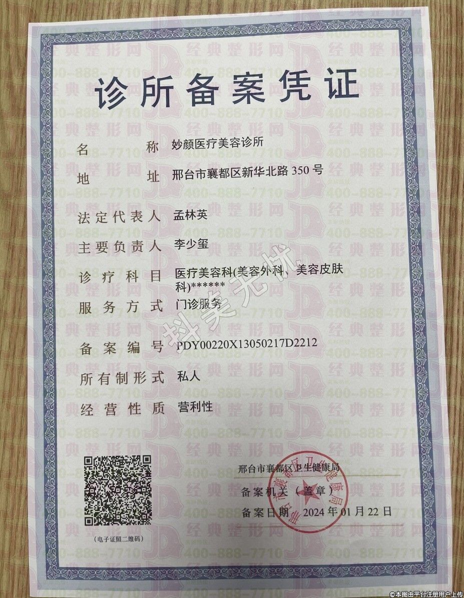 名稱:妙顏醫(yī)療美容診所址 邢臺(tái)市襄都區(qū)新華北路350號(hào)