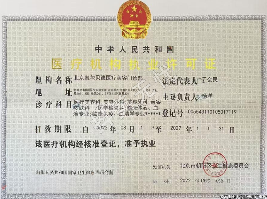 發(fā)證機(jī)關(guān):北京市朝陽區(qū)衛(wèi)生健康委員會(huì)