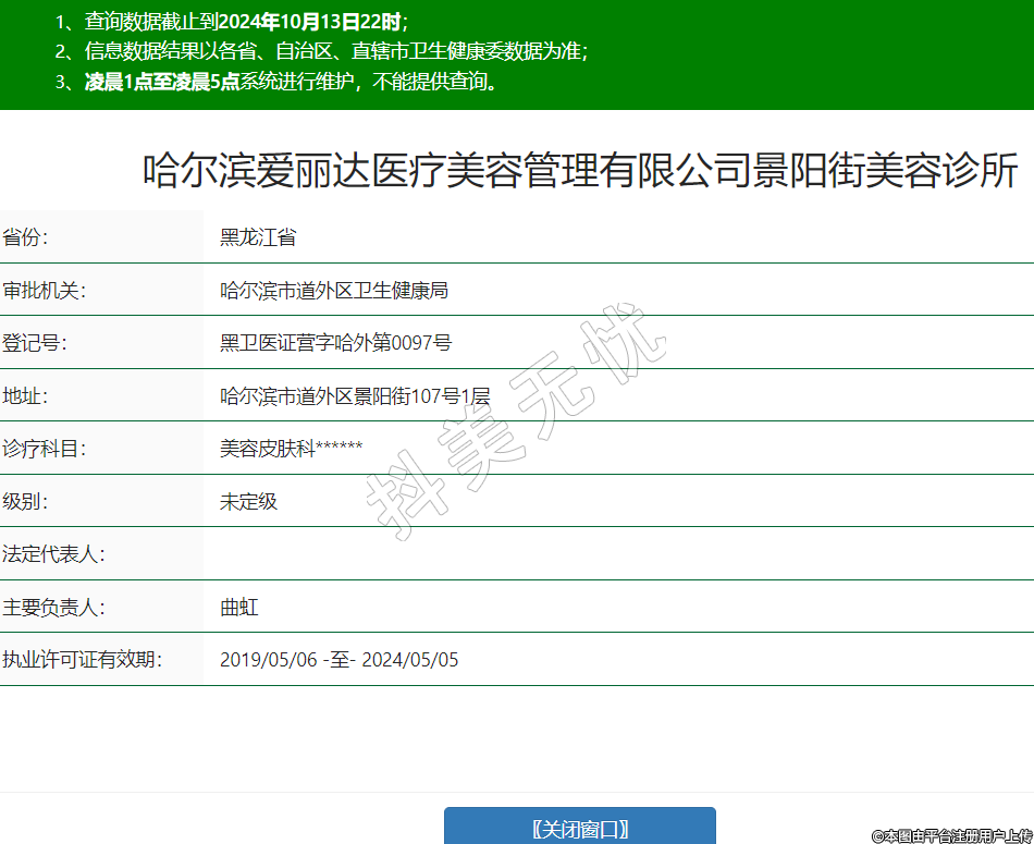 哈爾濱愛麗達(dá)醫(yī)療美容管理有限公司景陽街美容診所,診療科目:美容皮膚科******