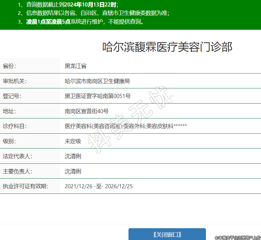 醫(yī)療美容科(美容咨詢室);美容外科;美容皮膚科******