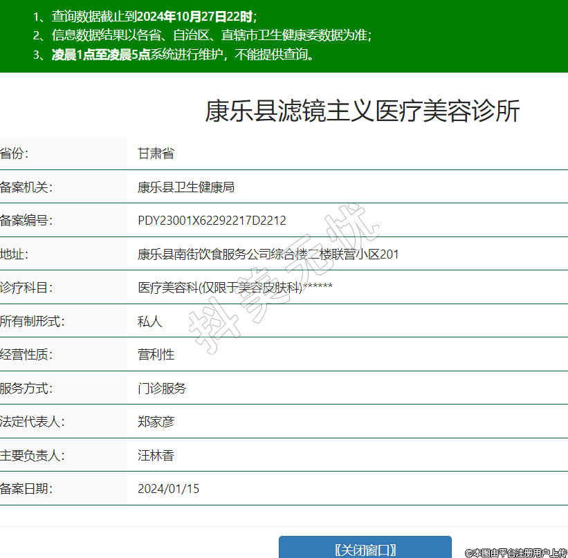 康樂縣濾鏡主義醫(yī)療美容診所,診療科目:醫(yī)療美容科(僅限于美容皮膚科)******