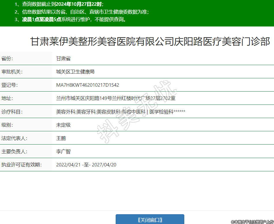 甘肅萊伊美整形美容醫(yī)院有限公司慶陽路醫(yī)療美容門診部