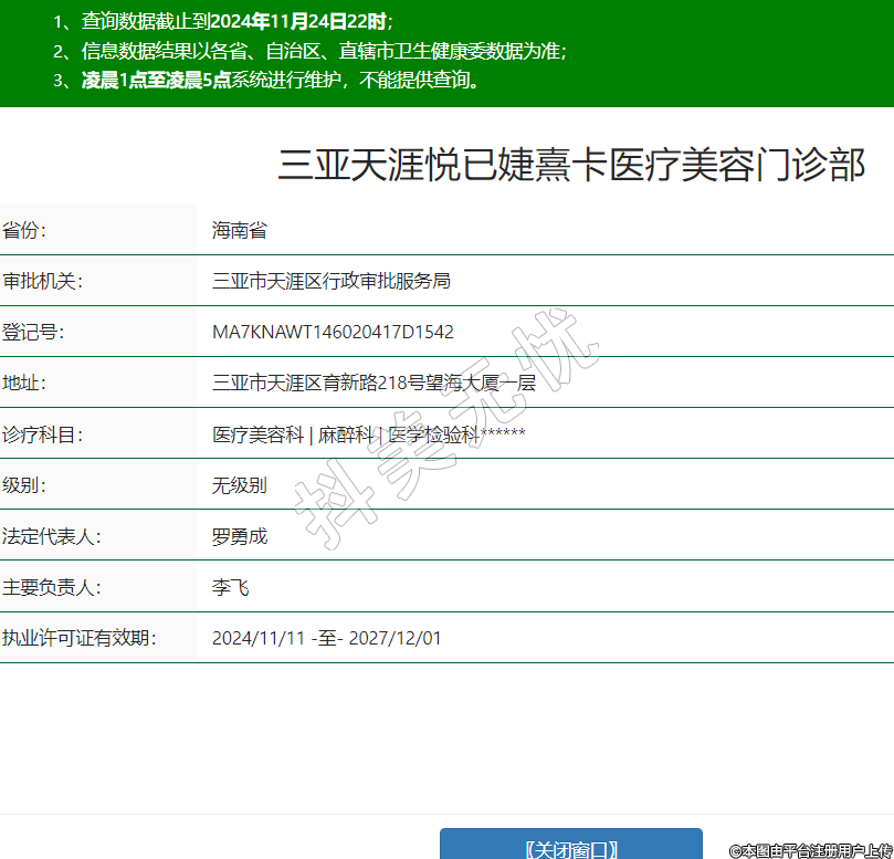 三亞天涯悅已婕熹卡醫(yī)療美容門診部,診療科目:醫(yī)療美容科 | 麻醉科 | 醫(yī)學(xué)檢驗科******
