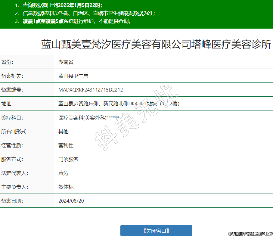 藍山甄美壹梵汐醫(yī)療美容有限公司塔峰醫(yī)療美容診所,診療科目:醫(yī)療美容科(美容外科)******