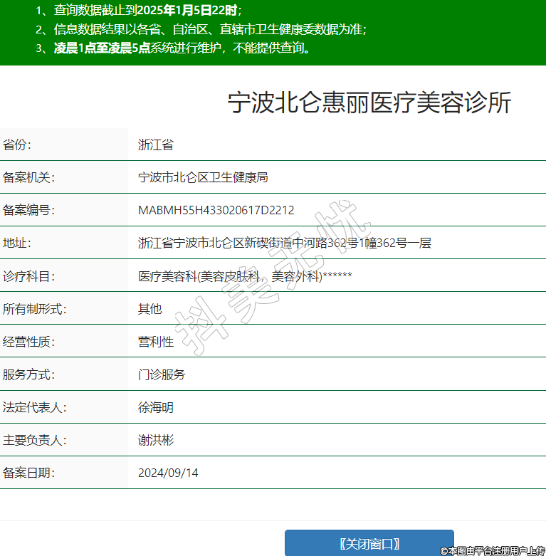 寧波北侖惠麗醫(yī)療美容診所,診療科目:醫(yī)療美容科(美容皮膚科,美容外科)******