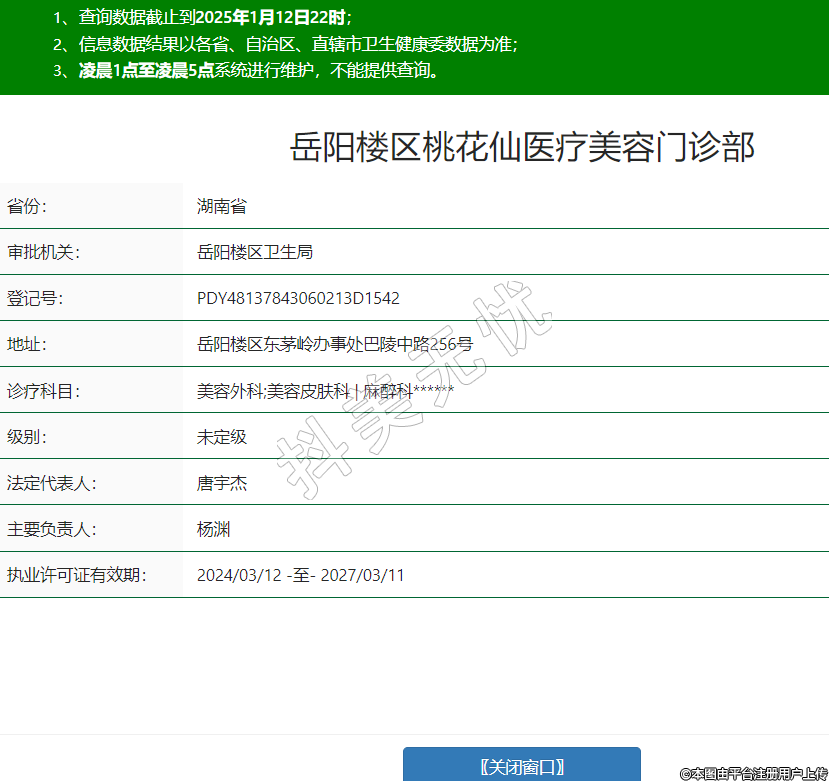 岳陽樓區(qū)桃花仙醫(yī)療美容門診部,診療科目:美容外科;美容皮膚科 | 麻醉科******
