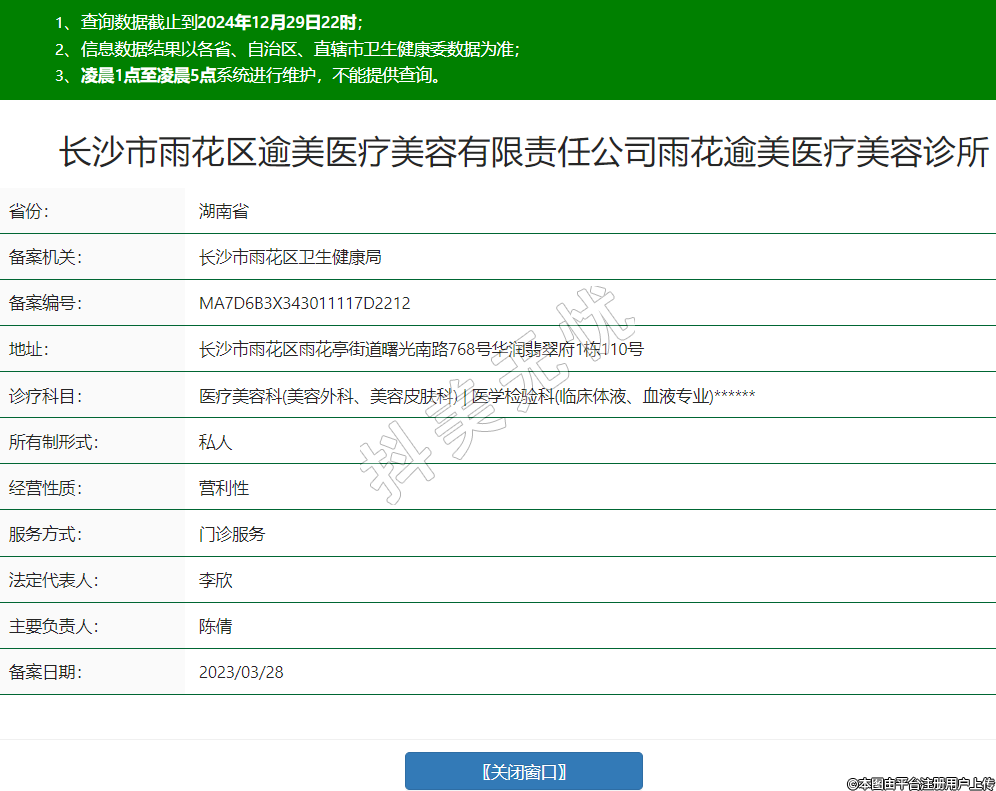 長沙市雨花區(qū)逾美醫(yī)療美容有限責(zé)任公司雨花逾美醫(yī)療美容診所