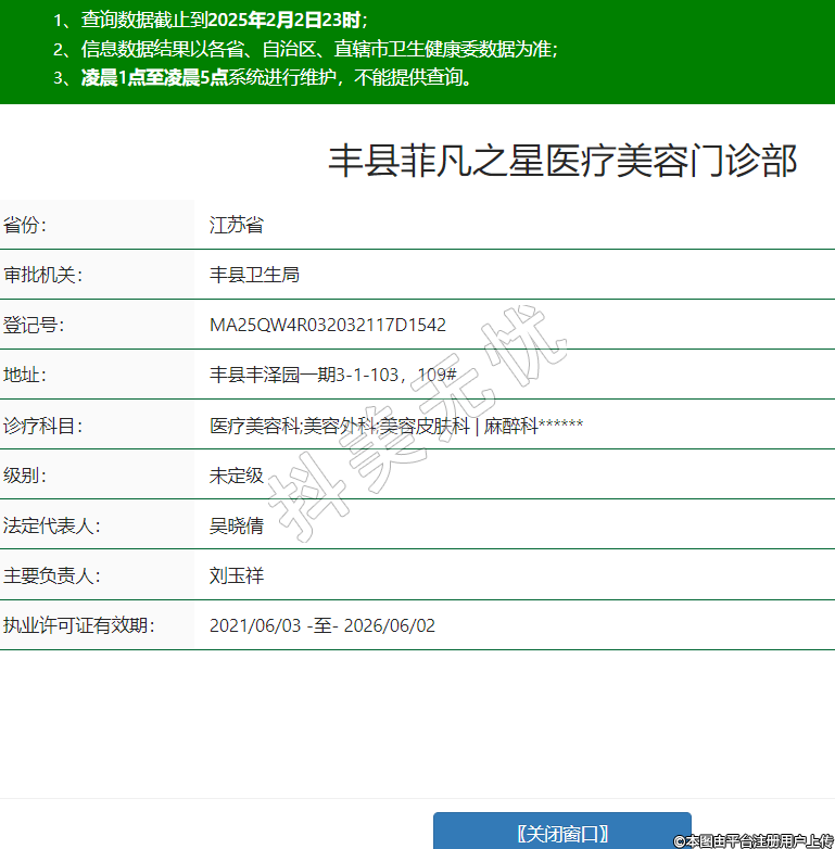 豐縣菲凡之星醫(yī)療美容門診部,診療科目:醫(yī)療美容科;美容外科;美容皮膚科 | 麻醉科******
