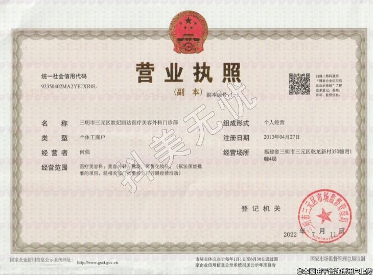 三明歐妃麗達(dá)醫(yī)療美容外科門(mén)診部成立于2013年,是由從事整形行業(yè)多年的何強(qiáng)院長(zhǎng)獨(dú)立創(chuàng)辦的整形機(jī)構(gòu),位于三明市列東街梅園國(guó)際酒店附樓四層(八中對(duì)面),有一個(gè)占地超2100平方米的奢華大氣的美麗空間,是一家醫(yī)療設(shè)備齊全、服務(wù)全面的專(zhuān)業(yè)整形美容機(jī)構(gòu)。這里有一群為美奉獻(xiàn)的醫(yī)美團(tuán)隊(duì),有專(zhuān)業(yè)的整形醫(yī)師,資深的醫(yī)美護(hù)士,經(jīng)驗(yàn)豐富的美容咨詢師。