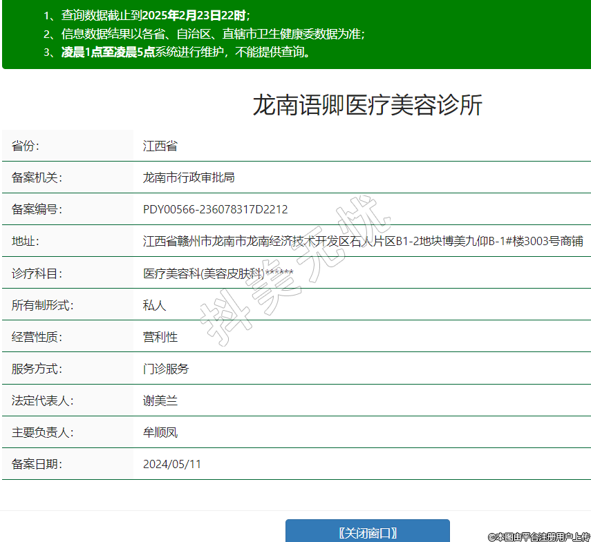 龍南語卿醫(yī)療美容診所,診療科目:醫(yī)療美容科(美容皮膚科)******