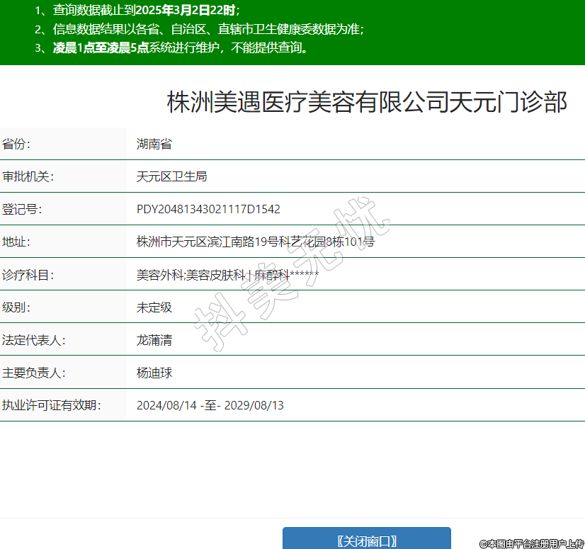 株洲美遇醫(yī)療美容有限公司天元門診部,診療科目:美容外科;美容皮膚科 | 麻醉科******