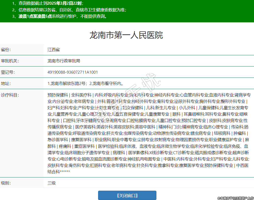 預(yù)防保健科 | 全科醫(yī)療科 | 內(nèi)科;呼吸內(nèi)科專業(yè);消化內(nèi)科專業(yè);神經(jīng)內(nèi)科專業(yè);心血管內(nèi)科專業(yè);血液內(nèi)科專業(yè);腎病學(xué)專業(yè);內(nèi)分泌專業(yè);老年病專業(yè) | 外科;普通外科專業(yè);神經(jīng)外科專業(yè);骨科專業(yè);泌尿外科專業(yè);胸外科專業(yè);整形外科專業(yè) | 婦產(chǎn)科;婦科專業(yè);產(chǎn)科專業(yè);計(jì)劃生育專業(yè) | 婦女保健科 | 兒科;新生兒專業(yè) | 小兒外科 | 兒童保健科;兒童生長(zhǎng)發(fā)育專業(yè);兒童營(yíng)養(yǎng)專業(yè);兒童心理衛(wèi)生專業(yè);兒童五官保健專業(yè);兒童康復(fù)專業(yè) | 眼科 | 耳鼻咽喉科;耳科專業(yè);鼻科專業(yè);咽喉科專業(yè) | 口腔科;牙體牙髓病專業(yè);牙周病專業(yè);口腔粘膜病專業(yè);兒童口腔專業(yè);預(yù)防口腔專業(yè) | 皮膚科;皮膚病專業(yè);性傳播疾病專業(yè) | 醫(yī)療美容科;美容外科;美容皮膚科;美容中醫(yī)科 | 精神科(門診);精神病專業(yè);臨床心理專業(yè) | 傳染科;腸道傳染病專業(yè);呼吸道傳染病專業(yè);肝炎專業(yè);蟲媒傳染病專業(yè);動(dòng)物源性傳染病專業(yè);蠕蟲病專業(yè) | 結(jié)核病科 | 腫瘤科 | 急診醫(yī)學(xué)科 | 康復(fù)醫(yī)學(xué)科 | 職業(yè)病科;職業(yè)中毒專業(yè);塵肺專業(yè);放射病專業(yè);物理因素?fù)p傷專業(yè);職業(yè)健康監(jiān)護(hù)專業(yè) | 麻醉科 | 疼痛科 | 重癥醫(yī)學(xué)科 | 醫(yī)學(xué)檢驗(yàn)科;臨床體液、血液專業(yè);臨床微生物學(xué)專業(yè);臨床化學(xué)檢驗(yàn)專業(yè);臨床免疫、血清學(xué)專業(yè);臨床細(xì)胞分子遺傳學(xué)專業(yè) | 病理科 | 醫(yī)學(xué)影像科;X線診斷專業(yè);CT診斷專業(yè);磁共振成像診斷專業(yè);超聲診斷專業(yè);心電診斷專業(yè);腦電及腦血流圖診斷專業(yè);神經(jīng)肌肉電圖專業(yè) | 中醫(yī)科;內(nèi)科專業(yè);外科專業(yè);婦產(chǎn)科專業(yè);兒科專業(yè);皮膚科專業(yè);骨傷科專業(yè);肛腸科專業(yè);老年病科專業(yè);針灸科專業(yè);推拿科專業(yè);康復(fù)醫(yī)學(xué)專業(yè);預(yù)防保健科專業(yè) | 中西醫(yī)結(jié)合科******