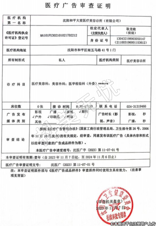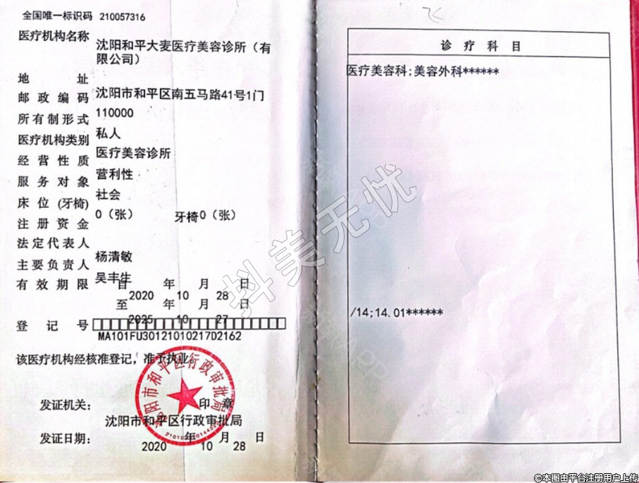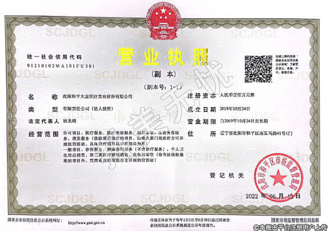 醫(yī)療機(jī)構(gòu)名稱:沈陽和平大麥醫(yī)療美容診所(有限公司)