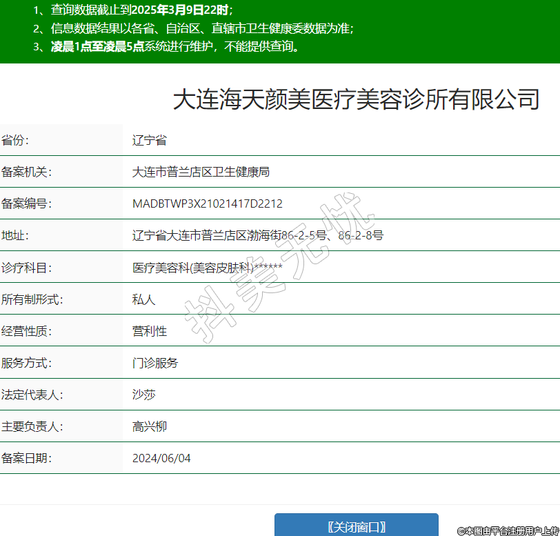 大連海天顏美醫(yī)療美容診所有限公司,診療科目:醫(yī)療美容科(美容皮膚科)******