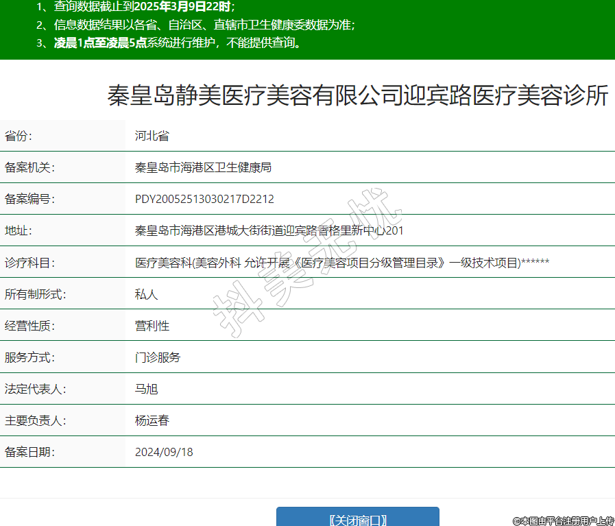 秦皇島靜美醫(yī)療美容有限公司迎賓路醫(yī)療美容診所,診療科目:醫(yī)療美容科(美容外科 允許開展《醫(yī)療美容項目分級管理目錄》一級技術(shù)項目)******