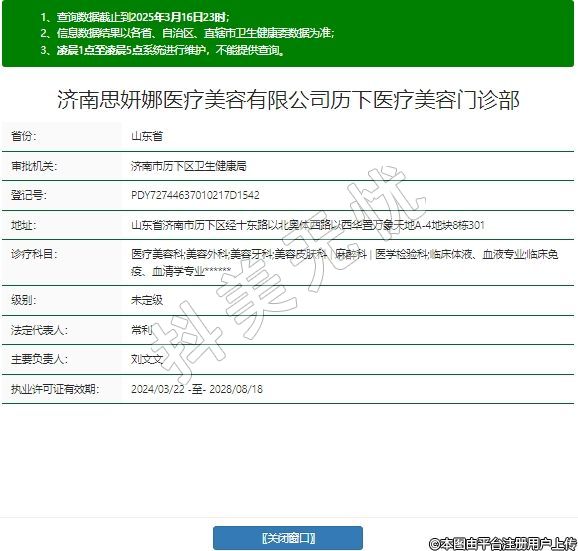 濟南思妍娜醫(yī)療美容門診部創(chuàng)建于2022年,地處于濟南市歷下區(qū)經(jīng)十東路以北奧體西路以西華置萬象天地A-4地塊8棟301。門診下設(shè)科室:整形外科、注射無創(chuàng)科、皮膚美容科、私密科、植發(fā)科、口腔科等科室。均遵循國際JCI(國際醫(yī)療衛(wèi)生機構(gòu)認證聯(lián)合委員會)服務(wù)金標(biāo)準(zhǔn),堅持以醫(yī)療技術(shù)為核心,貫徹秉承客戶至上的服務(wù)理念,為來院顧客提供一站式美麗服務(wù)。