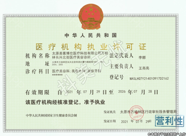 機構名稱:太原美客博仕醫(yī)療科技有限公司萬柏林長興北街醫(yī)療美容診所