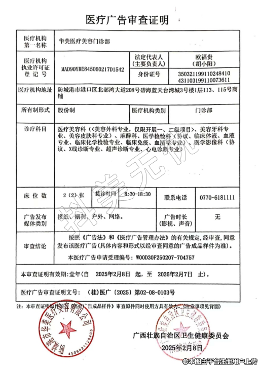 機(jī)構(gòu)名稱(chēng):防城港華美醫(yī)療美容門(mén)診部