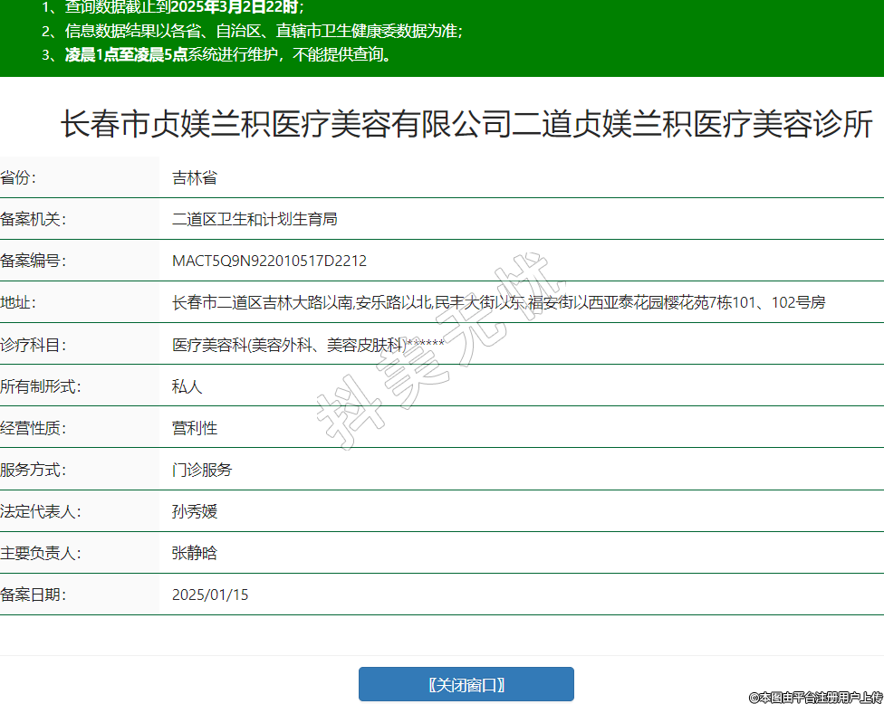 長春市貞媄蘭積醫(yī)療美容有限公司二道貞媄蘭積醫(yī)療美容診所