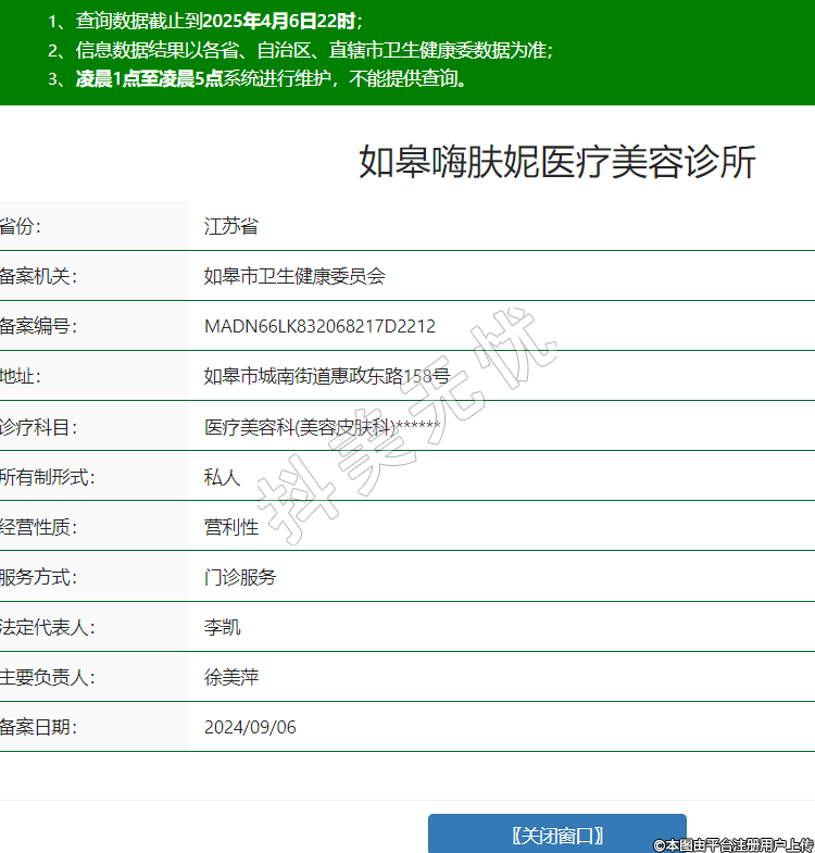 如皋嗨膚妮醫(yī)療美容診所,診療科目:醫(yī)療美容科(美容皮膚科)******