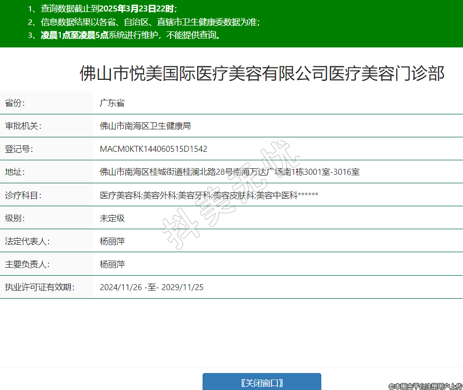 佛山市悅美國(guó)際醫(yī)療美容有限公司醫(yī)療美容門診部