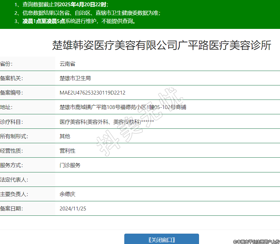 楚雄韓姿醫(yī)療美容有限公司廣平路醫(yī)療美容診所