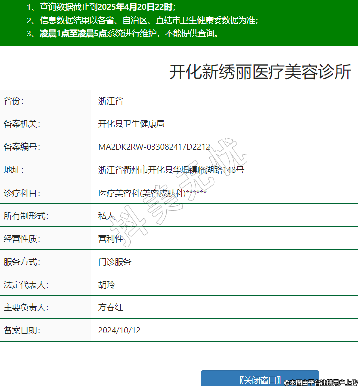 開化新繡麗醫(yī)療美容診所,診療科目:醫(yī)療美容科(美容皮膚科)******