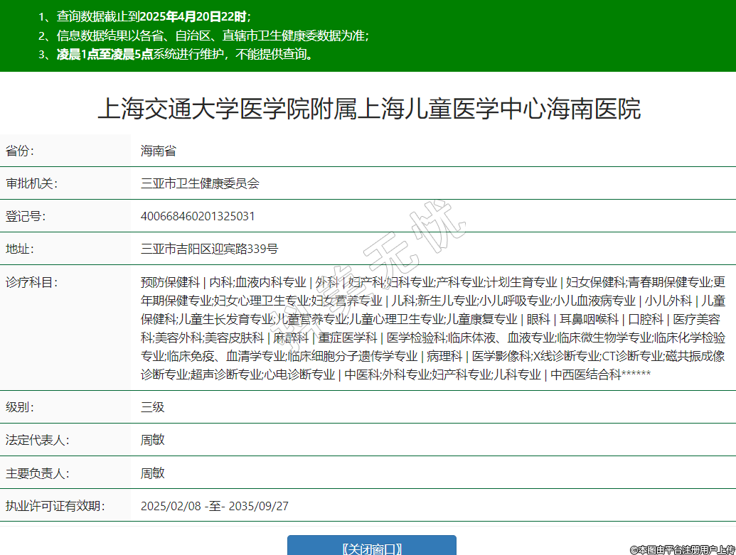 上海交通大學(xué)醫(yī)學(xué)院附屬上海兒童醫(yī)學(xué)中心海南醫(yī)院